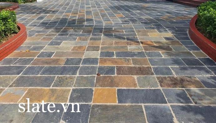 - Đá đa sắc quy cách là một vật liệu phổ biến được sử dụng để lát sân với tính năng bền, đẹp và chống mài mòn tốt.